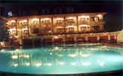 the rooms overlook the rippling swimming pool and also provide