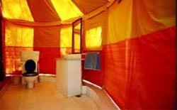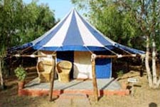 Sixteen fully furnished Swiss Cottage Tents with attached baths. 24 hrs running water.